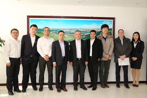 2017年3月2日,游松总裁会见淡水河谷矿产品(中国)有限公司业务发展总监艾森乔先生 (Mr. SergioEspeschit)、北京代表处首席代表艾杰龙先生(Mr. PhilipA.J. Nichols)、淡水河谷国际有限公司新加坡公司铁矿市场部经理爱德华多先生(Mr.EduardodeMelloFranco)等一行五人,双方就推进双边合作和共同关心的话题进行深入交流。