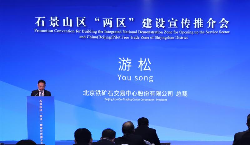 北铁中心总裁游松作为受邀企业代表首位发言,他分享和汇报了北铁中心以服务实体经济为宗旨,深耕铁矿石现货交易领域的创新经验与实践成果。下一步,北铁中心将积极贯彻政策精神,持续优化和创新服务,积极参与到石景山区“两区”建设的进程中,在共同推动“两区”高质量发展中实现互利共赢,为石景山区经济发展、为中国钢铁行业的健康发展做出更大贡献。